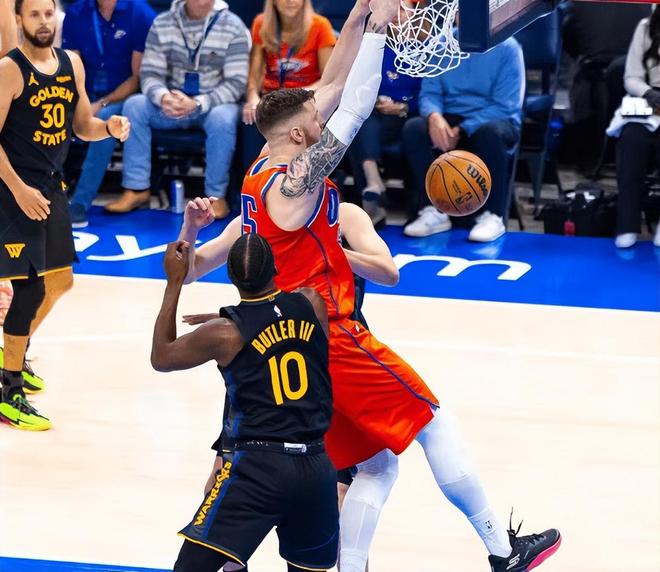 雷霆的强大,除了阵容深厚,进攻能力强,他们的防守也是名列前茅,场均10.5次抢断排在联盟第二,场均37.7次防守篮板排在联盟第一,场均5.4次封盖排在联盟第9。今天只让库里拿到11分(13投4中),让巴特勒只出手了3次,只有两次运动战进球。