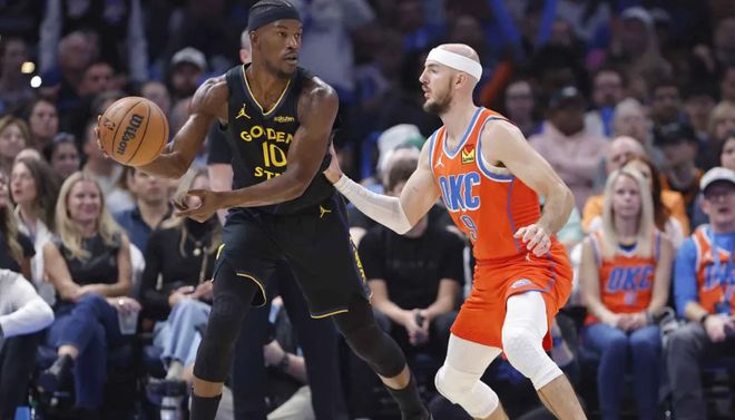 从本赛季勇士的表现来看,球队整体运转并不顺畅。截至目前,勇士场均得分116.1分(联盟第19),场均失分116.7分(联盟第16),攻防效率均在联盟18名左右徘徊,处于中下游水平。巴特勒和库里的搭档效果尚可——当两人同时出战时,勇士百回合能赢对手9.0分;但当库里不在场时,球队百回合输给对手4.2分。当巴特勒不能提供强大的进攻支持后,追梦格林不得不站出来在外线大量出手3分,科尔也不得不频繁调试阵容,尝试斯潘塞、理查德、小佩顿甚至戴维斯等角色球员,试图寻找稳定的得分点,但效果并不理想。库里年龄增大和伤病增多已成为不争的事实,勇士更需要巴特勒在常规赛承担更多的进攻责任,但他显然未能满足这一期望,在面对戈登、卡鲁索等人的防守时,巴特勒很难在进攻端有所作为。