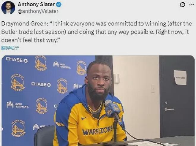 作为库里最忠实的支持者&向来直言不讳的追梦格林,之前在勇士102-126惨败雷霆的赛后,不点名怒喷道:“球员都要在团队框架下追求个人目标,否则这会导致你被赶走”,巴特勒也有类似的言论。